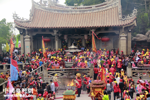 媽祖誕辰愈近,來湄洲媽祖祖廟謁祖的普通進香團、大型進香團劇增,圖為4月20日早上媽祖廟進香人潮。(中國臺灣網(wǎng) 楊麗 攝)