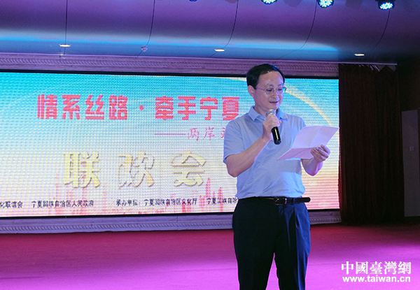 由中華文化聯(lián)誼會和寧夏回族自治區(qū)人民政府共同舉辦的“情系絲路·牽手寧夏——兩岸文化聯(lián)誼行”大型文化交流活動今天在銀川圓滿落幕。圖為文化部港澳臺辦副主任魯雁飛在當(dāng)天的閉幕聯(lián)誼會上致辭。(中國臺灣網(wǎng) 普燕 攝)