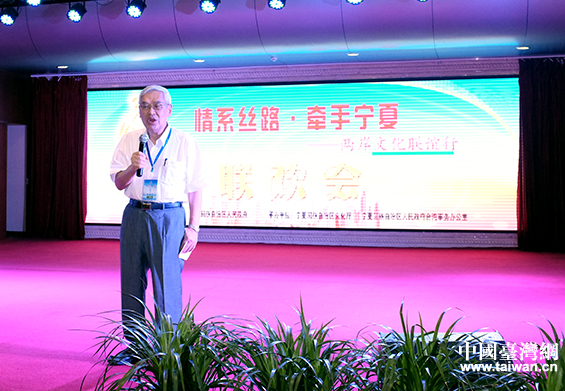 交流團(tuán)臺灣團(tuán)團(tuán)長、臺灣世新大學(xué)教授曾永義在閉幕聯(lián)誼會上致辭,并朗誦了寧夏行創(chuàng)作的詩詞。(中國臺灣網(wǎng) 普燕 攝)