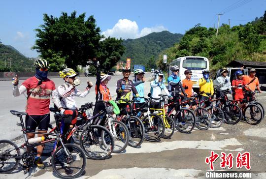 中新網(wǎng)福州7月26日電 (記者 閆旭)13位從臺(tái)北來(lái)到福州的單車手,26日上午頂著炎炎烈日,從福州閩侯縣竹岐鄉(xiāng)火炬村的公路出發(fā),踩著單車開(kāi)始了絲綢之路中國(guó)大陸段的騎行之旅。