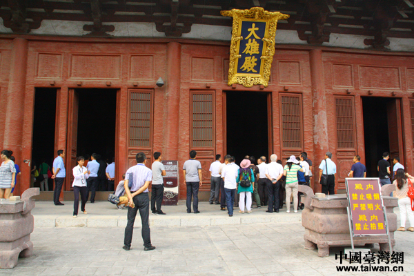8月18日,“第14屆遼寧臺灣周”在錦州市拉開帷幕。圖為參會臺灣嘉賓參訪錦州義縣奉國寺大雄殿。(中國臺灣網(wǎng) 王怡然 攝)
