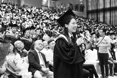 圖為在臺灣淡江大學(xué)就讀的一位陸生在畢業(yè)典禮上發(fā)言。新華社記者 才揚攝