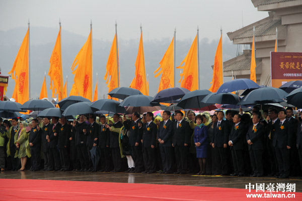 4月4日上午,小雨,丙申年清明公祭軒轅黃帝典禮在陜西省黃陵縣隆重舉行。(中國臺灣網(wǎng) 王怡然 攝)