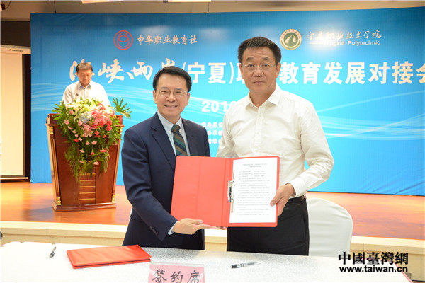 寧夏職業(yè)技術(shù)學(xué)院與臺灣中國科技大學(xué)簽署合作協(xié)議。(中國臺灣網(wǎng) 李寧 攝)
