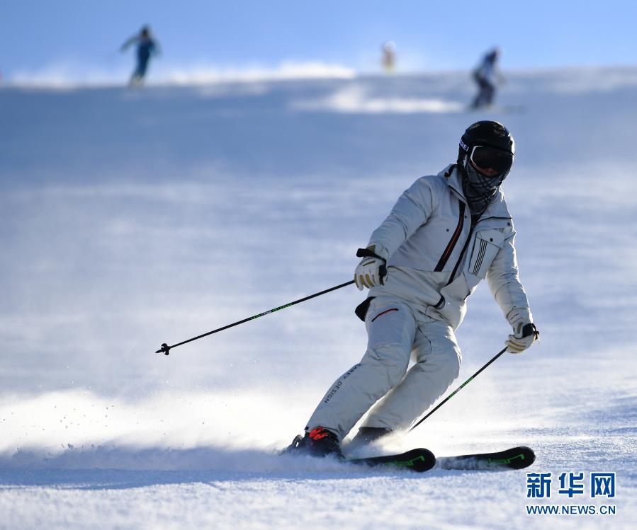 1月4日,滑雪愛好者新疆阿勒泰市將軍山滑雪場滑雪。新華社記者 沙達(dá)提 攝