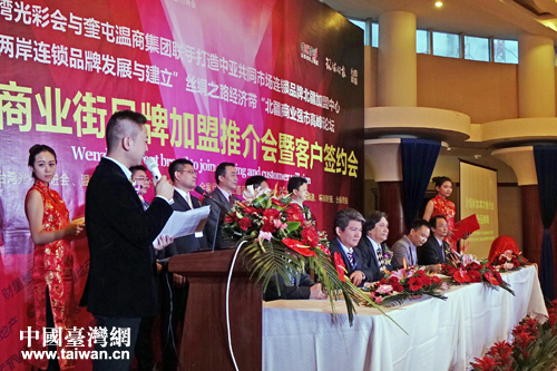 中國(guó)臺(tái)灣網(wǎng)12月12日奎屯消息 12月9日,由臺(tái)灣光彩促進(jìn)會(huì)與新疆奎屯溫商集團(tuán)共同舉辦的兩岸連鎖品牌商業(yè)論壇在新疆奎屯市隆重舉行,這是兩岸服務(wù)貿(mào)易協(xié)議簽訂后,臺(tái)灣連鎖品牌首次抱團(tuán)進(jìn)軍西北邊疆城市。