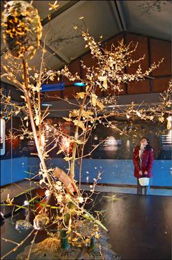 臺(tái)灣著名金雕藝術(shù)家吳卿,在傳藝中心舉辦“金色鄉(xiāng)情”金雕展,展出物以黃金為主體,搭配其他材料創(chuàng)作而成,作品做工精細(xì),金光閃閃,平時(shí)難得一見(jiàn)。