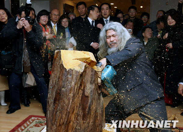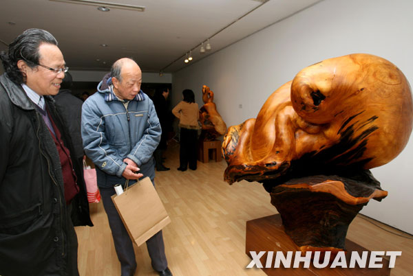 當(dāng)日,“生命——康木祥2010上海木雕藝術(shù)展”在上海美術(shù)館開(kāi)幕,臺(tái)灣著名木雕藝術(shù)家康木祥先生多年來(lái)的木雕精品首次在滬亮相。康木祥先生的作品取材寶島臺(tái)灣的原生木和漂流木,通過(guò)雕刻藝術(shù)與木質(zhì)的天然特性相融合,孕育和傳達(dá)出“生命中的喜悅與愛(ài)”,具有濃烈的臺(tái)灣風(fēng)情。新華社記者 劉穎 攝