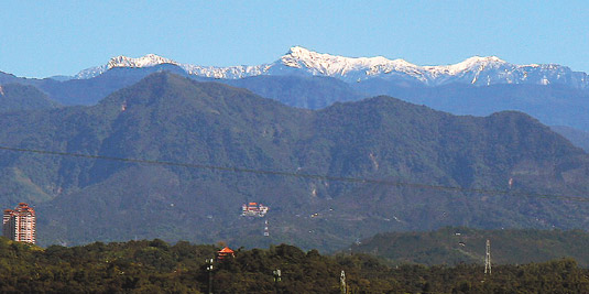 強(qiáng)烈大陸冷氣團(tuán)來(lái)襲,近來(lái)臺(tái)灣高山群大雪紛飛,成了銀色世界。玉山白頭在平地清晰可見(jiàn),十分罕見(jiàn);在嘉義縣民雄鄉(xiāng)住了近十年的曾小姐,驚訝表示沒(méi)在民雄看過(guò)如此清楚的玉山雪景。