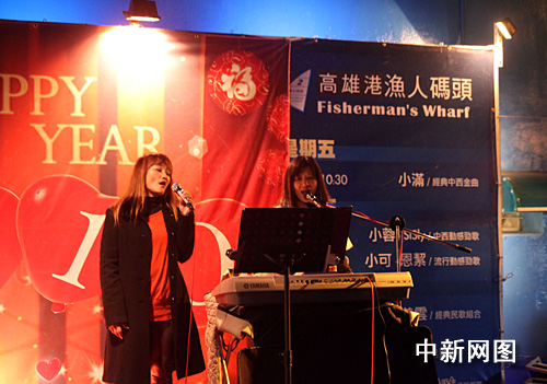 虎年春節(jié)將至,高雄市漁人碼頭街頭藝人迎春表演。 者:陳立宇