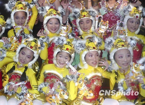 1月25日,在臺北市舉行的一場活動中,臺北小朋友以福虎裝束亮相。農(nóng)歷虎年將近,臺灣迎新春氣氛日漸濃郁。中新社發(fā) 曾嘉 攝