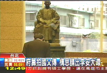環(huán)球網(wǎng)記者高琿報(bào)道 電影《十月圍城》票房告捷,臺(tái)灣“總統(tǒng)府”也搶搭熱潮。馬英九親自囑咐國(guó)民黨黨史館館長(zhǎng)邵銘煌籌拍“臺(tái)灣版國(guó)父?jìng)鳌保坫懟蛣t建議由國(guó)際知名導(dǎo)演李安拍攝。