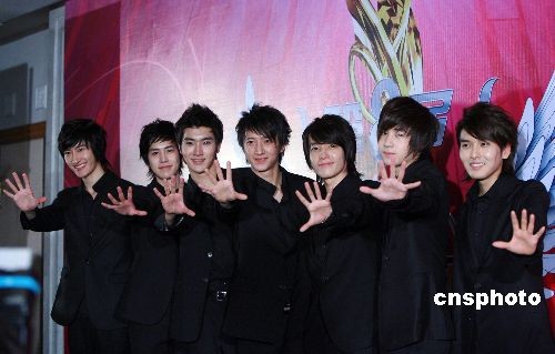 2008年4月8日晚,韓國組合Surper Junior中國成員韓庚率領(lǐng)中國計劃新組合SJ-M首次亮相,并在頒獎典禮現(xiàn)場熱舞獻(xiàn)藝。 中新社發(fā) 廖文靜 攝