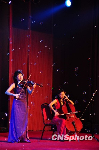 圖為臺(tái)灣弦音室內(nèi)樂(lè)集的藝術(shù)家在表演弦樂(lè)五重奏《臺(tái)灣民謠組曲》。中新社發(fā) 馬俊杰 攝