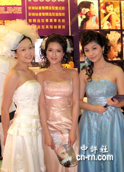 彩妝業(yè)者模特兒站臺宣傳。(中評社鄒巧韻攝)