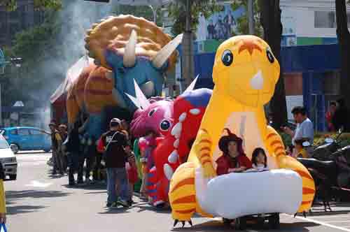 記者在現(xiàn)場看到,除了50只實(shí)體恐龍之外,在文心森林公園內(nèi)占地2公頃的恐龍園區(qū)內(nèi),還區(qū)分了7大部分,包括: 紙風(fēng)車恐龍家族、紙風(fēng)車大恐龍、始祖鳥劇場、藝術(shù)創(chuàng)意恐龍區(qū)、可愛恐龍區(qū)、紙風(fēng)車恐龍書店、環(huán)?铸埖,總共有超過100只的多元形式的恐龍,F(xiàn)場還有三座特制的恐龍蛋視聽室,人們只要走進(jìn)恐龍蛋里便可以觀賞到人們只要走進(jìn)恐龍蛋里,便可以觀賞到環(huán)保紀(jì)錄片《正負(fù)2度C》以及“新臺灣土地故事”影片。