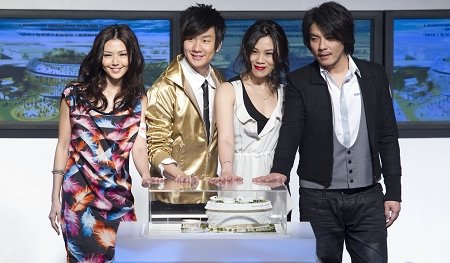 左起:孫燕姿、林俊杰、蔡健雅、阿杜昨日出席新加坡館主題歌揭曉儀式
