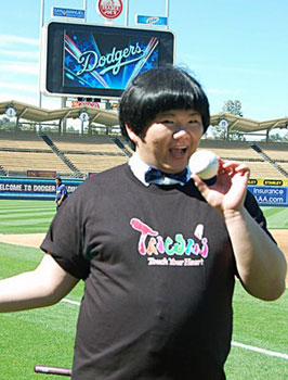 即將在道奇臺灣日獻(xiàn)唱的“小胖”林育群,20日走訪道奇主場,了解當(dāng)天演唱場地。 圖片來源:“中央社”