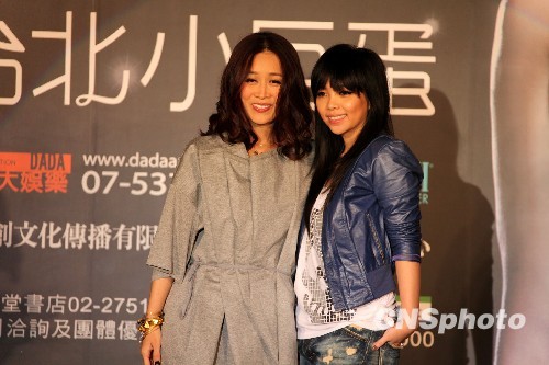 5月25日下午,大陸“情歌天后”那英“那20年世界巡回演唱會(huì)”臺(tái)北記者會(huì)舉行,臺(tái)灣“小天后”張惠妹(右)現(xiàn)身為好友站臺(tái)。董會(huì)峰 攝