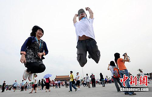 圖為臺灣的同學(xué)們在天安門廣場歡呼雀躍。 劉震 攝