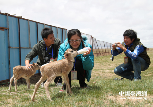 臺(tái)灣大學(xué)生喂小藏羚羊(圖片來(lái)源:青海省臺(tái)辦)