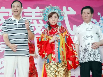 中國國民黨新北市長參選人朱立倫(左)12日表示,他對臺北市長郝龍斌有信心。圖為朱立倫出席,前臺灣省議會議長劉炳偉(右)的女兒劉美芳(中)新北市議員競選總部成立儀式。 圖片來源:“中央社”