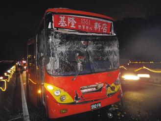 兩輛福和客運(yùn)中山高速公路上追撞 圖片來源:臺(tái)灣《聯(lián)合報(bào)》