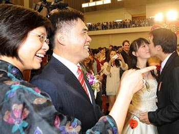 據(jù)臺(tái)灣“今日新聞網(wǎng)”報(bào)道,臺(tái)北市政府10日下午舉行“花現(xiàn)臺(tái)北2010聯(lián)合婚禮”,臺(tái)北市長(zhǎng)郝龍斌與夫人高閬仙現(xiàn)身為140對(duì)新人證婚,并祝福新人“幸福久久、十全十美、雙雙對(duì)對(duì)、萬(wàn)年富貴”。