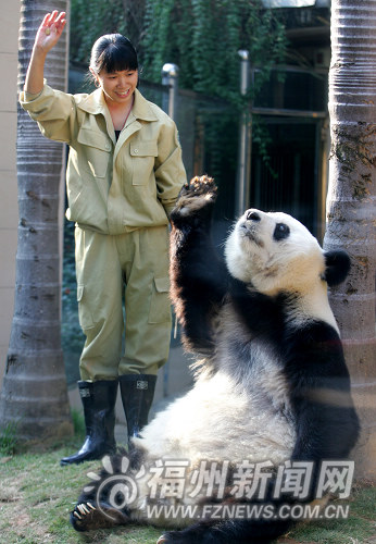 10日下午,“巴斯”與“五羊”的擁抱訓(xùn)練引得游客紛紛駐足觀看,“巴斯”一會兒拍拍“五羊”,一會兒親吻“五羊”,游客對“巴斯”的可愛表現(xiàn)贊嘆不已。(福州日報(bào)記者 祁正華/文 俞松/攝)