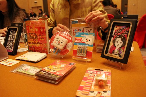 17日上午,兩岸城市文化創(chuàng)意產(chǎn)業(yè)商機洽談會(下稱洽談會)在京召開,共有18家臺灣企業(yè)參展,30多家大陸企業(yè)參加洽談。來自臺灣的創(chuàng)意產(chǎn)品在洽談會上紛紛亮相,瓷器、玩偶、婚慶用品……件件精致、新奇,處處透露著商機。
