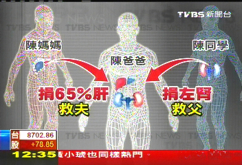 中國臺灣網(wǎng)12月6日消息 據(jù)臺灣TVBS電視臺報道,臺灣南投上演親情大戲,有一位47歲的陳先生肝腎嚴重衰竭,必須接受肝腎移植才能延續(xù)生命,而陳先生的血型和器官組織和妻兒正好吻合,最終妻子決定捐肝挽救丈夫,兒子也決定捐出左腎。明天一家3口要同時進行活體肝腎移植。