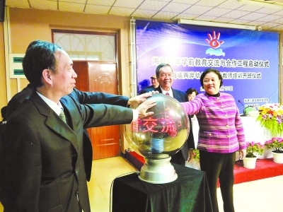 12月13日下午,由福建兒童發(fā)展職業(yè)學院主辦的海峽兩岸學前教育交流與合作工程儀式正式啟動,兩岸學前教育師資培訓中心也揭牌開課,包括臺灣木鐸學社理事長陳漢強在內的七位臺灣幼兒教育專家將為福建的30位幼兒園園長和30位骨干幼師講授《園所經營與管理》、《說故事技巧實務》、《魔術戲劇教學》、《幼兒音樂探索》等課程,今后海峽兩岸學前教育骨干教師培訓班還將定期舉辦,兩岸幼兒教師將開展互訪活動,師資交流實現經常化、常態(tài)化。