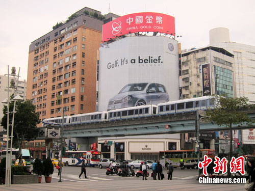 中國金幣總公司在臺灣的總經(jīng)銷臺灣大洋金幣公司2月1日在臺北市車水馬龍的忠孝復(fù)興街口設(shè)大型看板推介“中國金幣”品牌。
