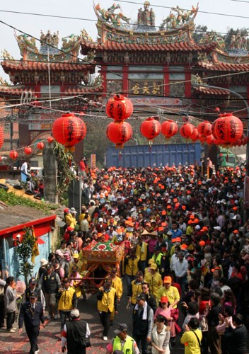 臺(tái)灣苗栗白沙屯媽祖3月14日回鑾,結(jié)束8天7夜往返北港的進(jìn)香路程,大批信徒簇?fù)碇鴭屪骅庌I進(jìn)入白沙屯地區(qū),場(chǎng)面壯觀。