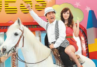 資料圖:臺(tái)灣“中視”盛大迎回吳宗憲(左)搭配侯佩岑,“你猜”首播收視不佳,考驗(yàn)天王未來(lái)魅力。