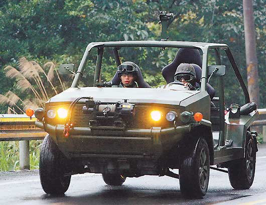 臺(tái)陸軍特戰(zhàn)隊(duì)四驅(qū)突擊車亮相,每輛要價(jià)180萬元。但網(wǎng)友紛紛質(zhì)疑稱,從“娘們”的外型看不出貴的道理。圖片來源:臺(tái)灣《聯(lián)合報(bào)》