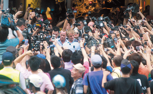 澳大利亞天后凱莉·米洛昨天抵臺,走親切路線,為接機的粉絲們簽名。圖片來源:臺灣《聯(lián)合報》