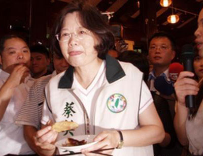 據(jù)臺灣今日新聞網(wǎng)報道,民進(jìn)黨2012參選人蔡英文9日參觀“茶推廣中心”,品嘗當(dāng)?shù)罔F觀音烹煮的菜肴,還不顧形象地大口啃雞翅。她自嘲,“我最近胃口很好!”一路吃吃喝喝,快樂地選舉。