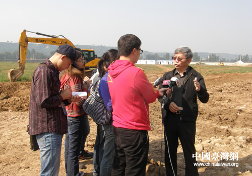 臺企巨子新能源科技有限公司總經(jīng)理李正文在項目工地接受記者團采訪。(圖片來源:洛陽市臺辦)