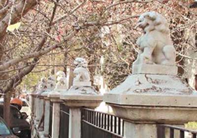 校區(qū)鐵欄桿上的石獅子,每只都不同,保護(hù)十分完整。據(jù)臺(tái)灣《聯(lián)合報(bào)》