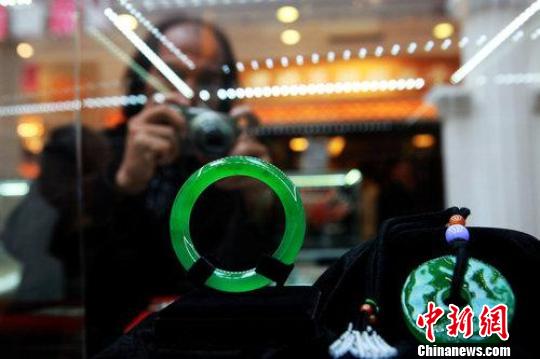 奢華珠寶展上,觀眾在拍攝一款極品翡翠手鐲。李克祥攝