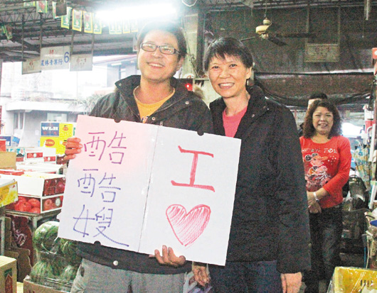 果菜市場(chǎng)裝卸貨頻繁,周美青穿著簡(jiǎn)單,有攤商沒認(rèn)出她,以為是顧客,對(duì)她按喇叭欲高速通過,被維安人員擋下。攤商發(fā)現(xiàn)是酷酷嫂,直說“歹勢(shì)”(道歉)。周美青微笑避進(jìn)攤位間,讓攤商先行。有支持?jǐn)偵套灾啤癐 LOVE酷酷嫂”紙板,周美青笑著合照。