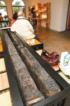 內(nèi)部保留焦黑屋梁設計而成的座椅。(圖片來自臺灣媒體)