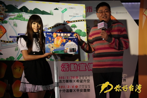 在1月5日下午舉行的2012新北市平溪國(guó)際天燈節(jié)的新聞發(fā)布會(huì)上,新北市觀光旅游局陳國(guó)君局長(zhǎng)通過(guò)本臺(tái)盛邀大陸民眾春節(jié)假期來(lái)平溪參加天燈祈;顒(dòng)。