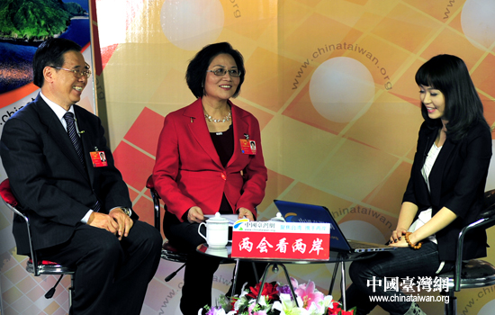 9日,十一屆全國人大臺籍代表陳蔚文(左)、陳云英(中)做客中國臺灣網(wǎng),談履職感受。(中國臺灣網(wǎng) 田云鵬 攝)