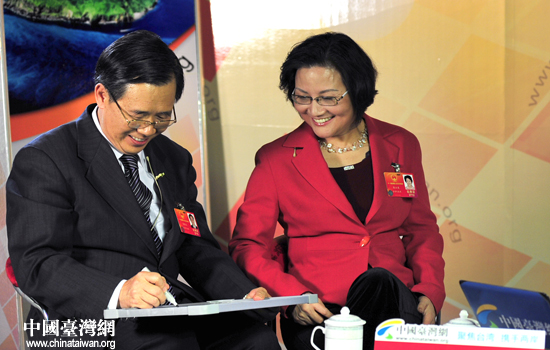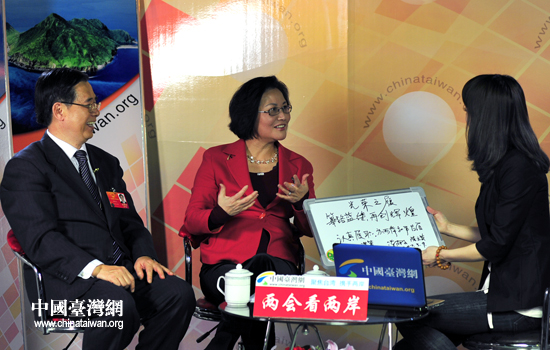 中國臺灣網(wǎng)3月11日北京消息 9日,正在參加十一屆全國兩會的臺籍代表陳蔚文、陳云英做客中國臺灣網(wǎng),暢談履職感受。兩位代表分別寫下“認(rèn)真履職,為兩岸和平發(fā)展獻(xiàn)計謀策”和“篳路藍(lán)縷、再創(chuàng)輝煌”的字句,并表示,無論明年能否連任全國人大代表,都將繼續(xù)為促進(jìn)兩岸關(guān)系發(fā)展、保障臺胞權(quán)益盡綿薄之力。(記者 田云鵬)
