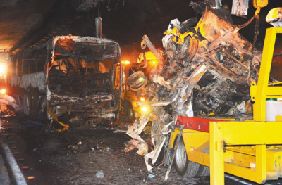 臺灣雪山隧道發(fā)生通車以來最嚴重車禍,現場慘不忍睹。(圖片來源于:臺灣《聯合報》)