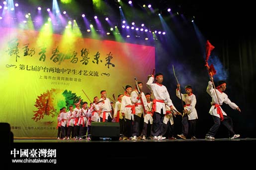 中國(guó)臺(tái)灣網(wǎng)8月20日上海消息 日前,由上海市臺(tái)灣同胞聯(lián)誼會(huì)主辦的“舞動(dòng)青春 唱響未來”——第七屆滬臺(tái)兩地中學(xué)生才藝交流在上海文化廣場(chǎng)揭幕。上海市委常委、上海海外聯(lián)誼會(huì)會(huì)長(zhǎng)沙海林、上海市臺(tái)辦副主任李雷鳴、上海海外聯(lián)誼會(huì)副會(huì)長(zhǎng)丁志堅(jiān)、上海市文廣局副局長(zhǎng)貝兆健以及臺(tái)灣地區(qū)民意代表陳淑慧、楊瓊瓔等出席。中共中央候補(bǔ)委員、上海市臺(tái)灣同胞聯(lián)誼會(huì)會(huì)長(zhǎng)林明月,中國(guó)國(guó)民黨榮譽(yù)主席吳伯雄夫人戴美玉分別致詞。