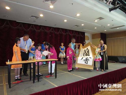 中福會少年宮的同學(xué)們向臺灣師生進(jìn)行才藝展示。(圖片來源:上海市臺聯(lián))