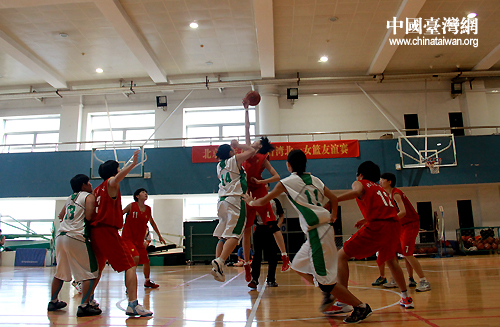 24日下午,北京青年女籃與臺(tái)灣臺(tái)北女子第一高中女子籃球隊(duì)展開一場(chǎng)跨越海峽的友誼賽,雙方“以球會(huì)友”。(中國(guó)臺(tái)灣網(wǎng) 普燕 攝)